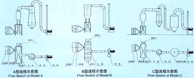 ■ 散粒状固体物料由加料器加如流化床干燥器中,过滤后的洁净空气加热后由鼓风机送入流化床底部经分布板与固体物料接触,形成流态化达到气固的热质交换。物料干燥后由排料口排出,废气由沸腾床顶部排出经旋风除尘器组和布袋除尘器回收固体粉料后排空。