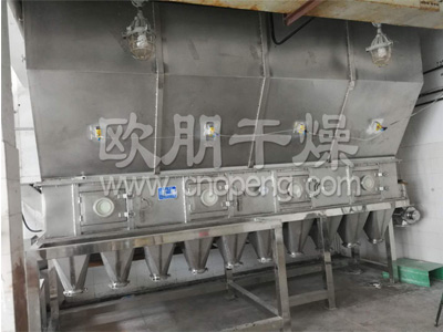 欧朋干燥制作的真空耙式干燥机是一种以热传导间接加热为主、卧式搅拌型干燥机。干燥机内水平耙式搅拌器的叶片由铸钢或厚壁无缝管制成,安装在圆形主轴上,一半叶片方向向左,另一半向右。轴的转速为7~8r/min,它是由带减速机的传动电机带动,同时设置自动转向,使主轴的转动每隔5~8min改变一次搅拌器的转动方向。而卧式沸腾干燥机是由空气过滤器、加热器、沸腾床主机,旋风分离器,布袋除尘器、高压离心风机、操作台组成,由于干燥物料的性质不同,配套除尘设备时,可按需要考虑,可同时选择旋风分离器、布袋除尘器,也可选择其中一种,一般来说比重较大的如冲剂及颗粒料干燥只需选择旋风分离器,比重较轻的小颗粒状和粉状物料需配套布袋除尘器,并备有气力送料装置及皮带输送机供选择。