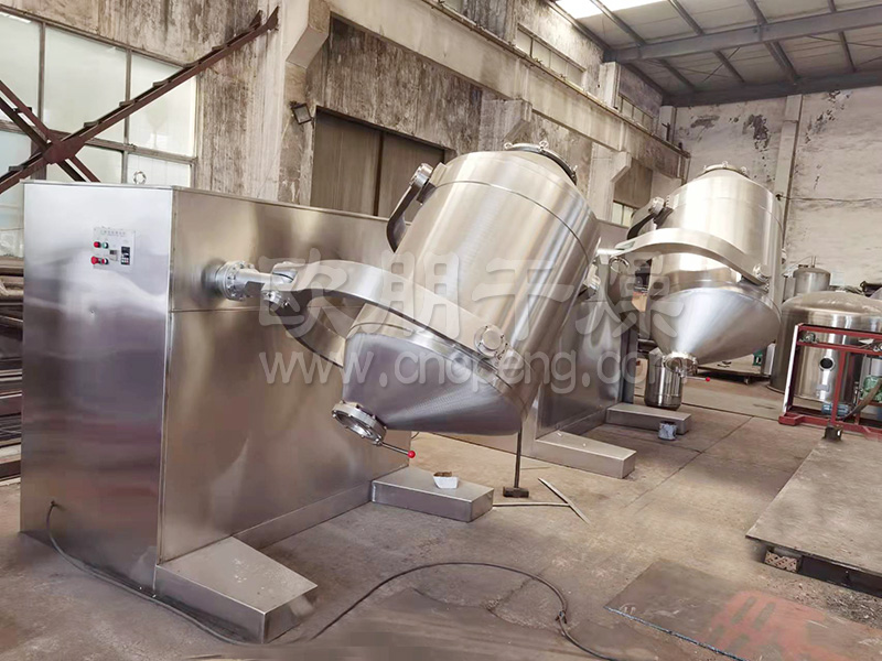 三维混合机是通过混合筒空间上的三维运动,来消除物料因离心力作用产生的比重偏析、分层、积聚现象,实现多种物料之间相互流动、扩散,从而达到快速、均匀地混合物料。目前各类混合设备中,三维混合机是各方面性能较理想的先进产品。